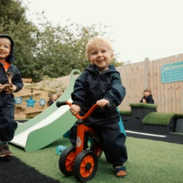 the weekly music group session and how much time she gets to spend outdoors. As a parent, I love the photo and video updates via the parent app over the course of the day and it's so nice to get a schedule in advance each week of the planned activities that will be going on. We were worried after an extended break from nursery, due to COVID, that there would be tears on her return but from her first day back she walked straight to the breakfast table and waved dad goodbye...cheerfully! A real testament to how comfortable she is with the staff and how much fun she has with them. We look forward to enrolling our little boy in the future and would highly recommend.